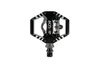 leichtes Combo-Pedal mit einseitigem Edelstahl Klick-System, SPD-kompatibel, anpassbare Federhärte, sicherer Halt durch 8 einstell- und austauschbare Pins, hochwertiges CNC Finish, gedichtetes Patronengleitlager und gedichtetes Industrielager, haltbare, CNC gefräste und ausgebohrte Cr-Mo Achse, Lieferumfang beinhaltet ein Paar CleatsMaterial: Aluminium