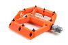leichtes Flat-Pedal, Nylon-verstärkter-Kunststoff-Körper und CrMo Achse, angefaste Kanten für erhöhte Bodenfreiheit in Kurven, große Standfläche, extrem flache Bauweise, neun austauschbare und einstellbare Pins pro Seite, gedichtete IndustrielagerMaterial: Kunststoff