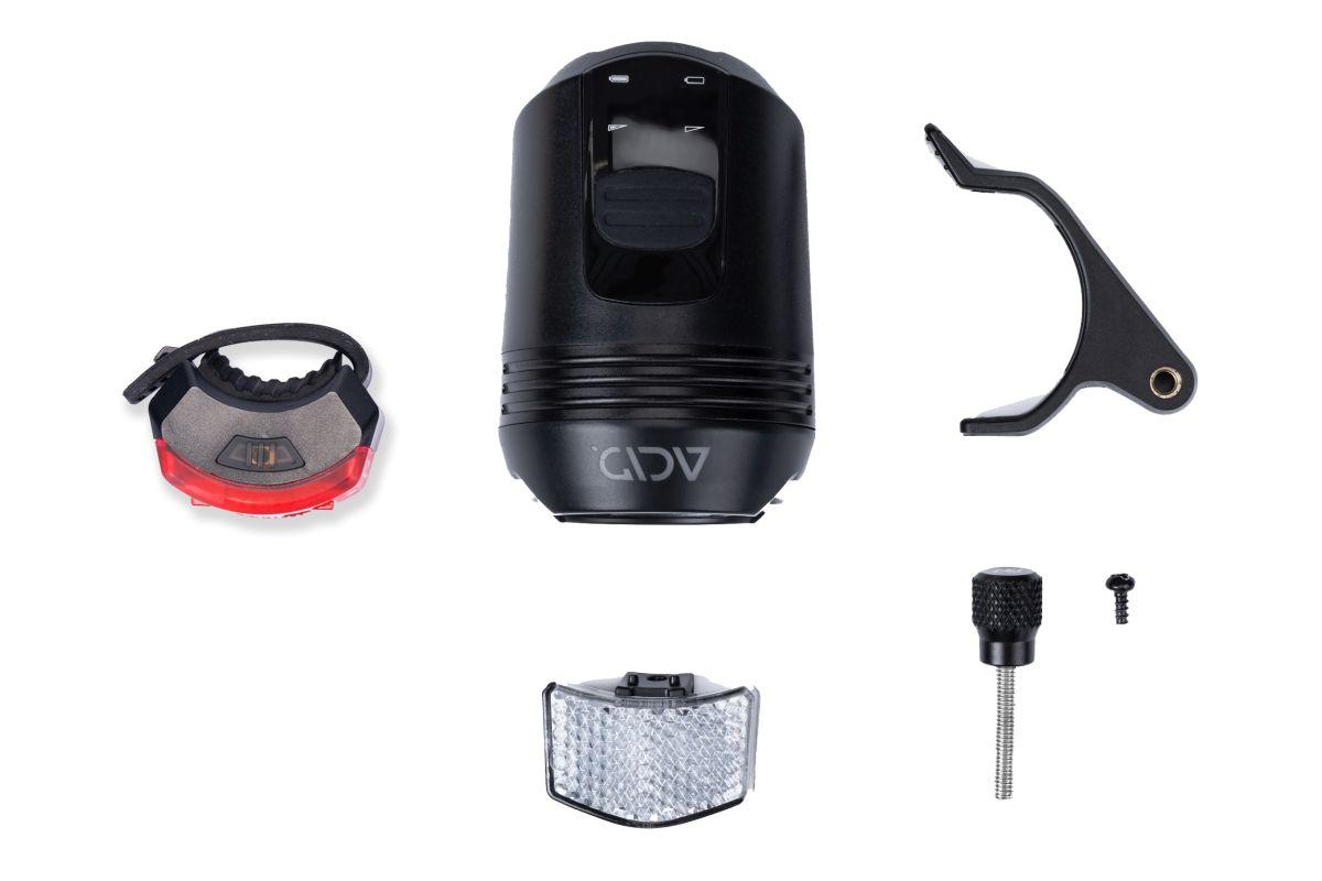 ACID E-Bike Frontlicht PRO 60 FPILink und ACID Rücklicht PRO EVOLUTION garantiert dir nicht nur gute Sichtbarkeit gegenüber anderen Verkehrsteilnehmern, es beleuchtet mit seinen 60 Lux auch zuverlässig den Weg vor dir, während das Rücklicht mit integriertem Bremslicht nachfolgende Verkehrsteilnehmer bei Bremsmanövern warnt. Natürlich ist es StVZO zugelassen. Mit dem CUBE exklusiven FPILink (Front Plate Integration Link) lässt es sich mit nur einem Klick an kompatiblen Vorbauplatten unserer CUBE-Bikes anbringen. Damit ist es perfekt mittig positioniert und sorgt für einen cleanen Look am Bike. Anhand der jeweils vier LEDs hast du jederzeit die gewählte Leuchtstufe und den Batteriestand im Blick. Immer mit dabei: ein StVZO zugelassener K-Reflektor für das Frontlicht. Aufgeladen werden beide Leuchten per USB-C.