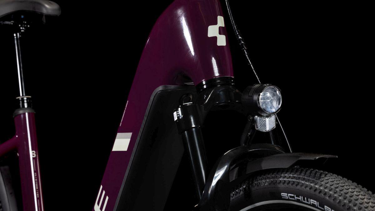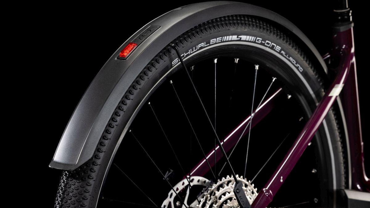 Der Tiefeinsteiger-Rahmen des Nuride Hybrid hält, was sein Name verspricht – einfaches, unkompliziertes Auf- und Absteigen sind damit garantiert. Doch da ist noch mehr: Neben einer Federgabel mit 100 mm Federweg für ein Plus an Fahrkomfort und Kontrolle haben wir das Chassis mit großzügiger Reifenfreiheit (sogar inklusive der mitgelieferten Schutzbleche) ausgestattet. Im Inneren verlaufende Züge unterstreichen die cleane Optik des Rahmens und verursachen kaum Wartungsaufwand. Ebenso harmonisch ins Design integriert sind der Bosch CX Antrieb und der 800 Wh starke PowerTube Akku. Außerdem gibt's einen Kettenschutz sowie ein UDH für einfachere Ersatzteilverfügbarkeit. Was noch? Serienmäßig verbaute Schutzbleche, Lichter und ein Seitenständer. Da kann das nächste Touren-Abenteuer kommen!